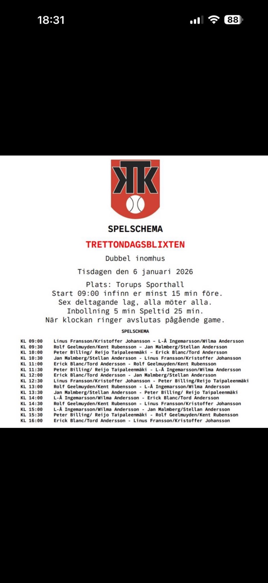 Är du sugen på att spela? Anmäl er senast den 2 Januari genom att swisha anmälningsavgiften 50 kr till Swish# 123 583 6259 Glöm inte ange för vem/klubb och vad betalningen avser.
